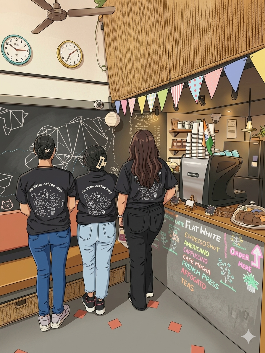 Espresso shot Americano French Press Cappuccino Piccolo (Short Cappucino) Café Latte Flat White Cortado Matcha Latte Café Mocha Caramel Café Mocha Vanilla Latte Hot Chocolate Charcoal Latte Charcoal Espresso Macchiato Green/Black Tea Black Tea with spices Chai Ginger Lemon Tea |